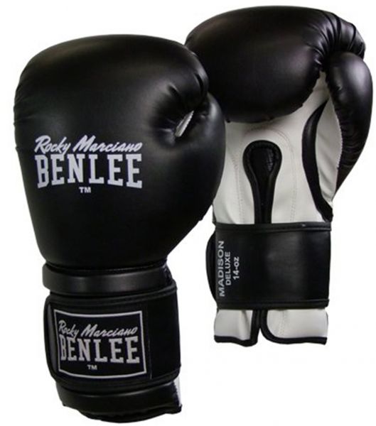 描述:BenLee Rocky Marciano boxing gloves Madison is a new developed training and sparring glove model, designed for high comfort combined with high level of safety during training. So is this model padded with a very chunky and highly shock-absorbing one.