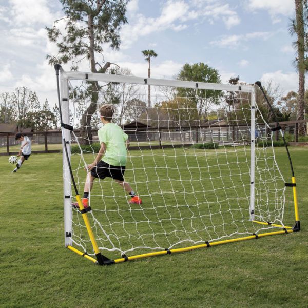The Quickster® Soccer Goals are ultra-portable, durable, and set up for any match with ease. Get your practice going in under 2 minutes. The Quickster® is easy to setup and ultra-portable, yet durable and stable for youth and elite players alike. The unique Tension-Tite poles create a sturdy frame, while the easy velcro net attachments and steel ground stakes ensure the net will stay put. Carry bag is included for easy, compact storage
