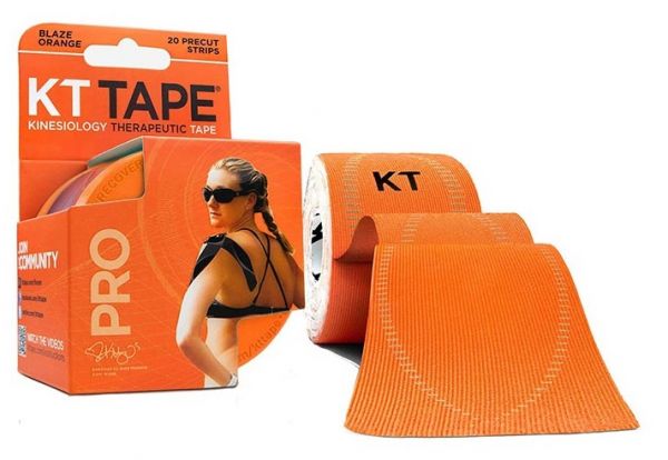 Synthetic-based kinesiology tape (elastic sports tape) designed to provide long-lasting comfortable support without the bulk of a brace of sleeve. It can be worn for up to a week at a time, is water resistant and is easy to use. It also helps reduce or eliminate pain in muscles, ligaments, and tendons. It is 2 to 3 times stronger than cotton-based kinesiology. KT Tape Pro is the latest breakthrough in light elastic taping. The synthetic fibers are performance engineered with a larger elastic core. KT Tape Pro last longer and works harder to keep you in the game. KT Tape Pro features a stronger adhesive, quicker drying fibers, and a reflective pattern for increased safety when running or biking in low light conditions. KT Tape is a strong, elastic athletic tape that reduces muscle pain, increases mobility, and enhances athletic performance. KT Tape provides relief and support for muscles and joints and can be used to prevent or treat hundreds of sports injuries. Kinesiology tape, treatments, and application techniques have been used by healthcare professionals such as orthopedics, chiropractors, physical therapists and athletic trainers for over thirty years. KT Tape is the first brand of kinesiology tape ever to be offered directly to consumers and is widely adopted by healthcare professionals and sports teams.