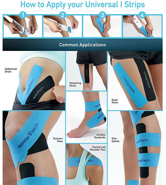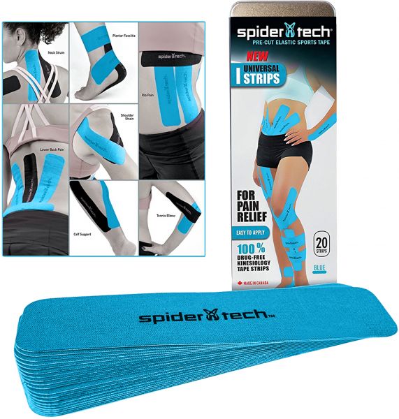 描述:Spidertech universal strips innovative athletic therapeutic sports kinesiology tape in a sturdy reusable tin pack, engineered and manufactured in canada using premium material used for shin splints, plantar fasciitis, tennis elbow, arthritis, runner’s knee, strains and soreness among other issues hypo-allergenic and latex-free to reduce skin irritation and outbreaks easy to use, drug-free, enhances performance, is waterproof and lasts up to 5 days and comes with free instructions available inside - it's so effective you have to experience it to believe it! Use it on your elbow, ankle, knee, back, wrist, shoulder, or anywhere for fast targeted relief