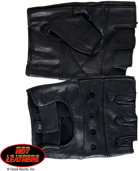 Fingerless Leather Gloves by Hot Leathers are unlined and constructed with adjustable Velcro straps and padded palms.