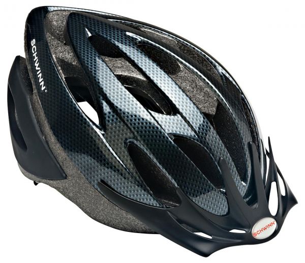 Schwinn Thrasher Bike Helmet gives you ample protection for your head. This adult helmet is extremely durable and won't weigh you down. The dial fit on the Carbon Fiber-Look Schwinn Thrasher Helmet offers 100 percent adjustability to comfortably accommodate larger or smaller heads. The adjustable side straps also ensure that the helmet is on you securely. This adult bike helmet is constructed with vents to help keep air flowing, while a removable visor provides additional protection from the elements that may distract you from enjoying your adventure. This model comes in trendy patterns so you can ride in style.