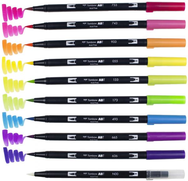 56185 Features: -Includes the following colors: Rubine red, hot pink, orange, process yellow, chartreuse, willow green, reflex blue, purple, imperial purple, and a colorless blender. -Ideal for fine art, illustrations, doodling, journaling, hand lettering and more. -Each water-based, bleed-free pen is blendable with odorless and acid-free ink. -Nylon brush tip works like a paintbrush to create fine, medium or bold strokes while the fine tip gives consistent lines. -Single ink reservoir in each pen ensures exact color match. -Each brush tip self cleans after blending. Ink Color: -Multi. Pack Size: -Ten. Point: -Bold. Item: -Pen Sets. Number of Items Included: -10. Pen Type: -Felt & Porous. Dimensions: Overall Length: -9". Overall Product Weight: -0.35 lbs.