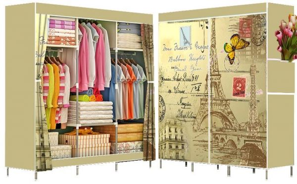 Portable Wardrobe Organizer Side Curtain Cover Eiffel Tower Print