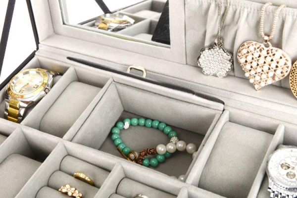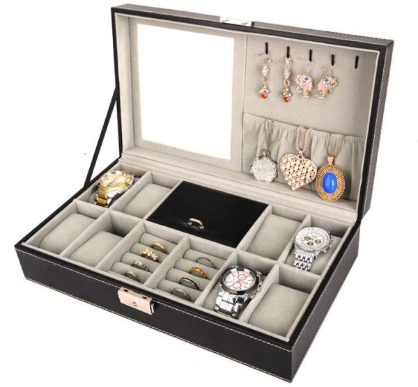 Watch Ring Jewelry Storage Box Organizer Multifunction Box Pu Leather Gift, Black