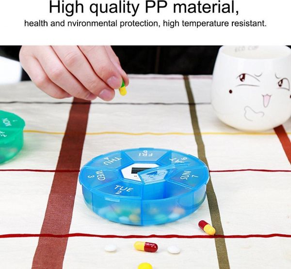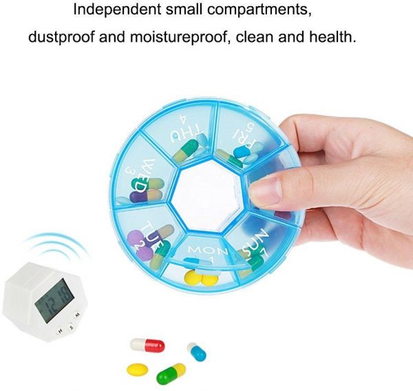 7 compartments can hold one-week pills, tablets and capsules. Weeks display, you can differentiate everyday medicine easily.