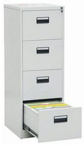 This 4 Drawervertical filing cabinet has steel construction and powder coated aluminum finish. It is simple and elegant and easy to assemble. Its sleek yet sturdy design is perfect for home decor. This4 Drawer Vertical Filing Cabinet features 4 spacious drawers for addedconvenience. Product Features:Type: Closets and CabinetsColor: GreyMaterial: AluminiumDurableSpacious and elegantAssemble Required: YesProduct Dimensions: H 133 x W 45 x D 62 cmProduct Weight: 29 Kg
