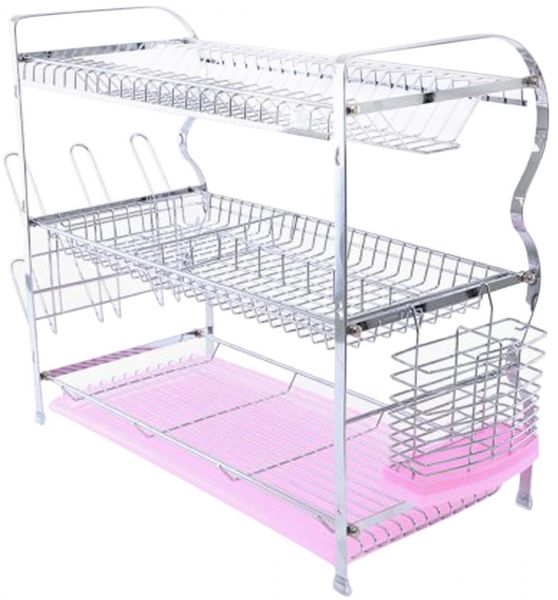 Let the dishes dry off while you cherish your favorite shows by investing in this Royalford RF2569 Wall Hanging Dish Rack. The 3-layer dish rack is made from iron and is long lasting. Featuring a heavy duty and rust-resistant chromed wire, the wall hanging rack stays stable at all times. The dish rack has a removable plastic tray and utensil rack. The draining trays allow easy removal of excess water from the vessels. Thanks to the removable dividers, you can customize the rack and use it as per your requirements. Also includes is a flat section that can hold coffee mugs and glasses or tumblers