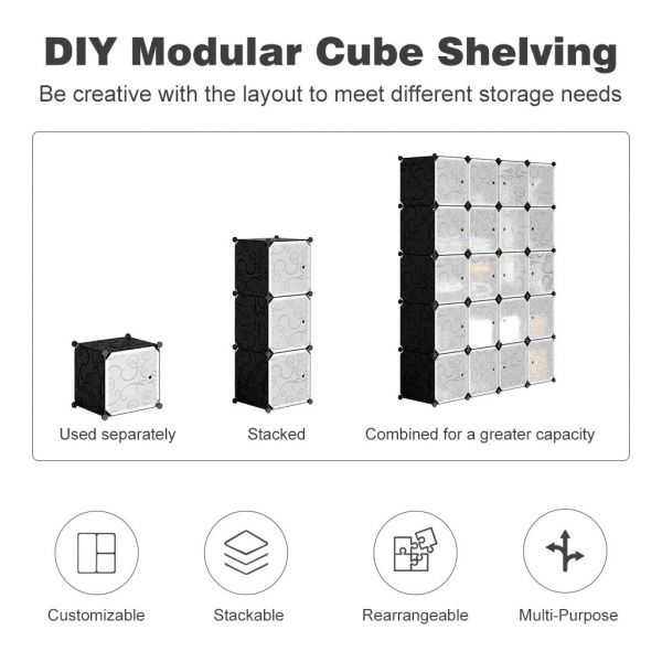 this 20-multiposition cubes organizing closet is perfect for a modern home. You could either build the cubes together to form an entire closet, or separate them into a couple of matching shelving units. This is a perfect idea for rooms with a smaller surface, combine the panels depending on your needs and put together your free standing closet!
