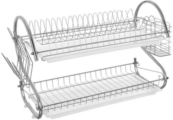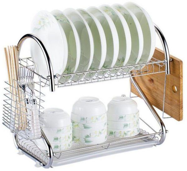 Dish Drying Rack Two Layer Stainless Steel Utensil Holder With Drain Board
