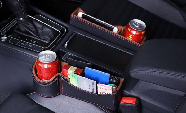 Storage Box Car Organizer Seat Gap PU Leather Case Pocket Car Seat Side Slit for Wallet Phone Coins