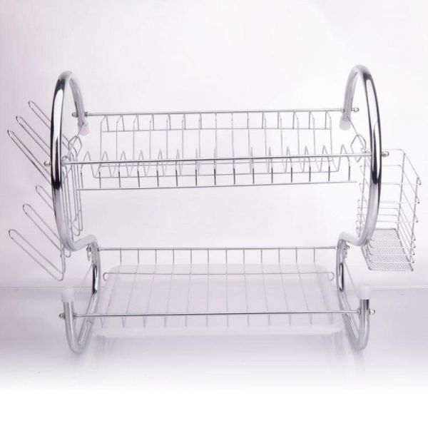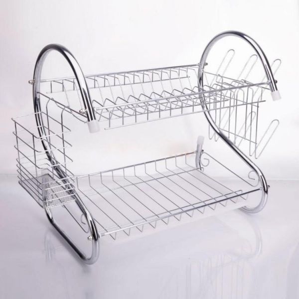 - 2 Tiers Kitchen Dish Cup Drying Rack Holder Sink Drainer Stainless Steel