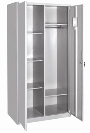 This 2 door Easy to Assemble cabinet has steel construction and powder coated aluminium finish to give it strength and Durability. It has one hanger side while the other holds on to three evenly divided adjustable Shelves. The doors are lockable. It's a must have and equally suitable for household as well as for office for all those looking for perfect and easy organization.