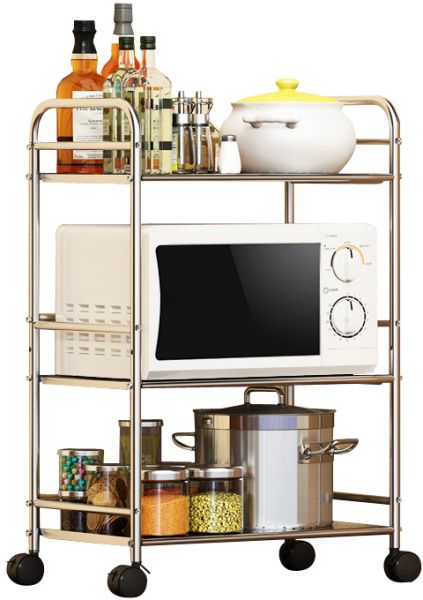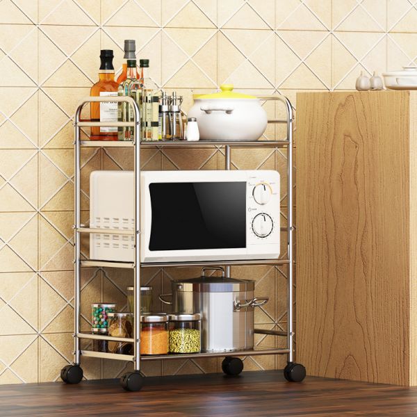 side frame:Left and right one, Shelf:3pcs, Cross bar:9pcs, Screw:18pcs, Universal wheel:4pcs, Antiskid foot pad:4pcs