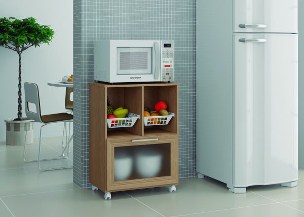 Style and elegance are hallmarks of this fine piece. It has a sleek and smooth finish. Perfect for your kitchen, its simplicity will compliment any decor. It features a 2 pull out vegetable baskets, a single door cabinet and 4 wheeled legs.