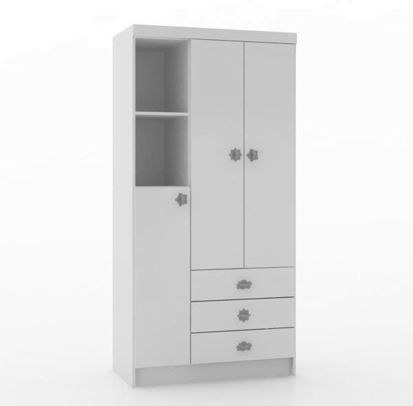Ditalia MDPen Wardrobe will complete any bedroom. It has a sleek finish that will not take up space in your room. It features two compartments, three doors with shelf and metal hanger, three sliding drawers with metal runners. This wardrobe will help organize all your accessories, clothing and save space around the house.