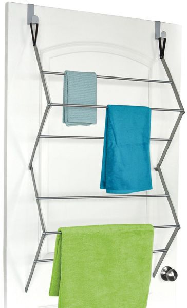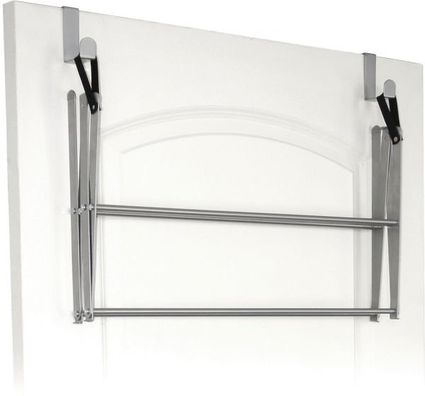 4150004EC.01 Features: -Provides drying space without an inch of floor space required. -Color: Silver. Country of Manufacture: -United States. Location: -Indoor. Dimensions: -Fits all standard size doors (1.375" and 1.75"). Overall Height - Top to Bottom: -39". Overall Width - Side to Side: -23.5". Overall Depth - Front to Back: -8.5". Overall Product Weight: -4.3 lbs. Drying Space: -11.5".