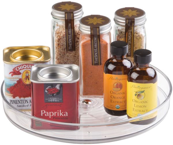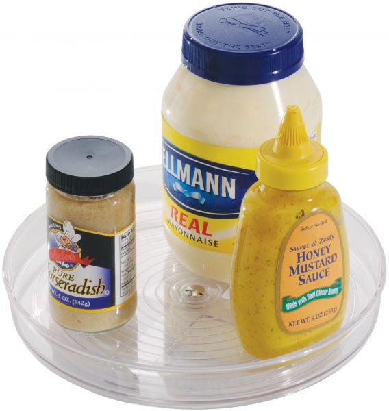 Small spaces can be harder to keep organized. This turntable will make the most use of your narrow cabinets and small spaces. The durable, clear Resipreme is perfect for keeping canned goods, packets or spice jars neat and orderly in your cabinets. Just spin the turntable and grab what you need without having to fumble around through stacks of stuff. This attractive turntable is also a perfect table topper and offers enough storage for your salt and pepper grinders and other condiments of choice without dominating your table. An outer rim will keep everything neatly in place and the clear, easy-to-clean design will blend in beautifully wherever you choose to use it.