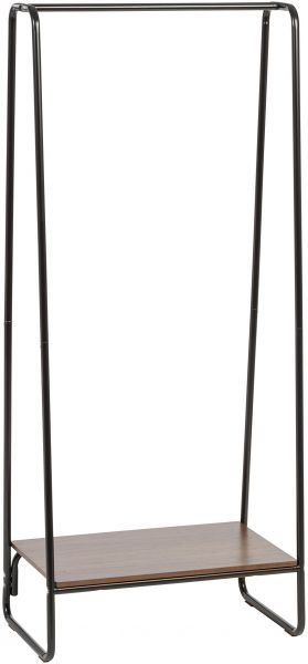 IRIS Metal Garment Rack with Wood Shelf, Black and Dark Brown