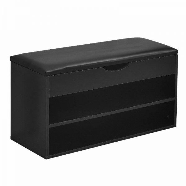Storage Bench Cushion Organizer with Shoe Rack BLACK