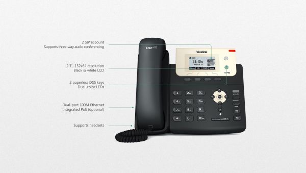 Yealink’s new SIP-T21P E2 takes entry-level IP phones to a level never achieved before. Making full-use of high-quality materials, plus an extra-large 132x64-pixel graphical LCD with backlight showing a clear 5-line data display, it offers a smoother user experience, much more visual information at a glance, plus HD Voice characteristics. Meanwhile, the dual 10/100 Mbps network ports with integrated PoE makes T21P E2 an ideal choice for extended network use. The T21P E2 supports two VoIP accounts, simple, flexible and secure installation options, plus support for IPv6, Open VPN and a redundancy server. It also operates with SRTP/ HTTPS/ TLS, 802.1x. As a very cost-effective and powerful IP solution, the T21P E2 maximizes productivity in both small and large office environments.