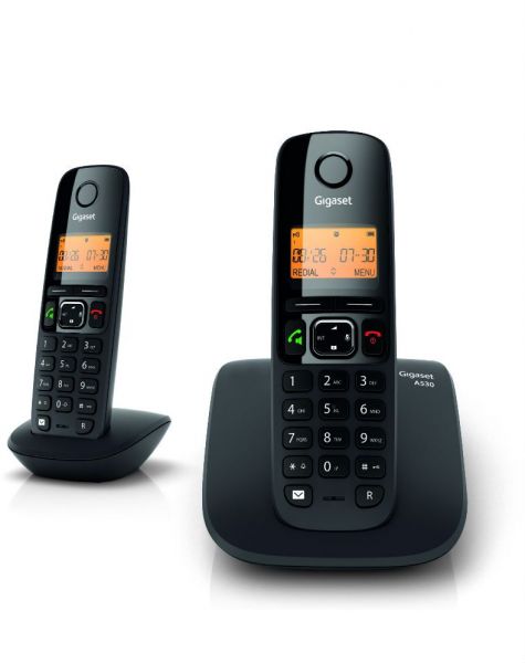 Gigaset cordless telephone supports paging. This Gigaset handset flaunts a beautiful black finish that gives it a chic look.Now that you are expanding your business, you will need to connect with more and more clients. For comfortable and crystal-clear calling experience, get your hands on this Gigaset A530 DUO Cordless Telephone. It arrives in a set of two cordless telephones that allows you to connect to the same outgoing line that you are required to share with your staffs and other officials. The phonebook feature enables you to store up to 100 contact numbers so that you can call them instantly without rambling through your phone directory. Both the telephones have a 1.8inch display with backlight that allows you to operate the phone in dark environment without facing any problem. The Gigaset handset also offers an extensive cordless range for seamless connectivity. The caller ID feature updates you with the caller’s name and number. Furthermore, these telephones have 10 ringtones that allow you to set your favorite one for a personalized feel. They also have an alarm clock that lets you schedule your day efficiently. The speakerphone and adjustable volume level add to your comfort of using these devices. They offer a talk time of 7 hours so that you can have an unhindered conversation with your partner. These Gigaset cordless telephones flaunt a sleek and ergonomic design.