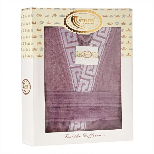 Senoures Jacquard Velour Turkeys Bath Robe - Purple, Medium