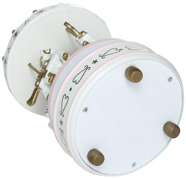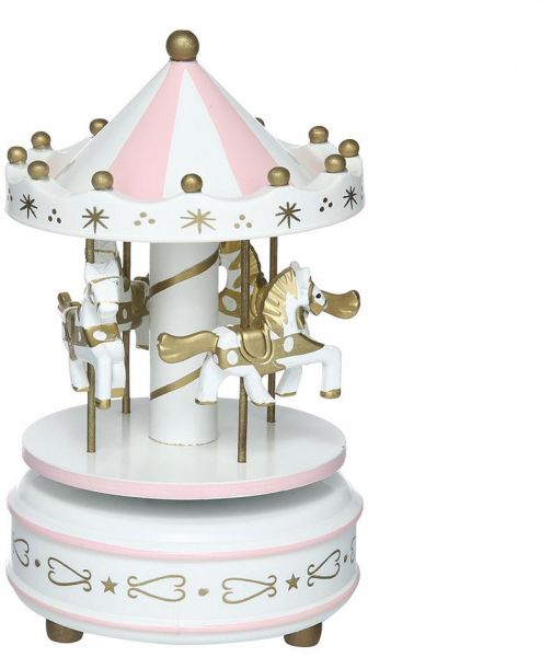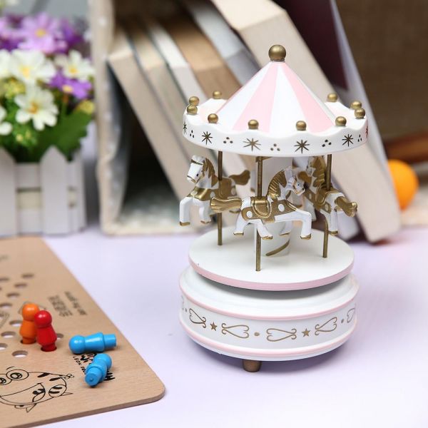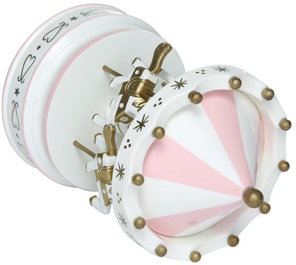 Musical Toys box rotatable. for children or home decoration. Color: Pink and white. Material: Wood and Plastic. Product Dimensions (D x H): 11 x 18 cm. Product Weight: 300 g.