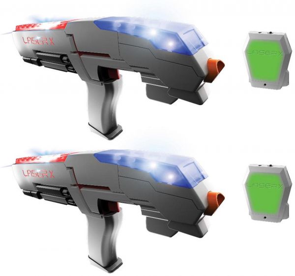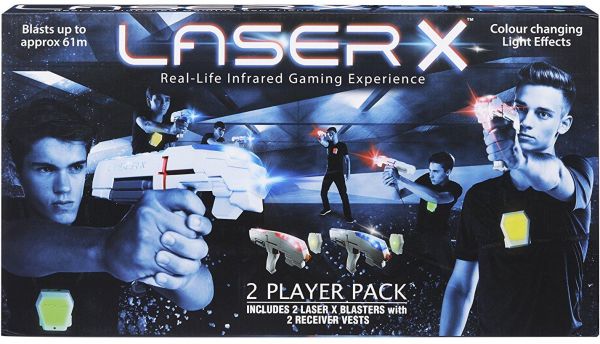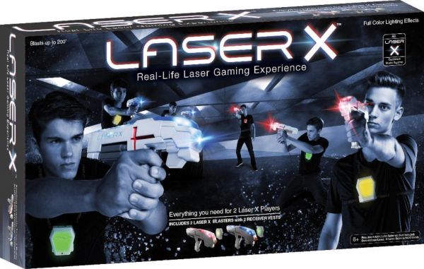 Laser X Double Set is the ultimate high tech game of tag. It's like having a real laser arena right in your own backyard. Includes everything you need for 2 Laser X Players - 2 Laser X Blasters with 2 Receiving Vests.