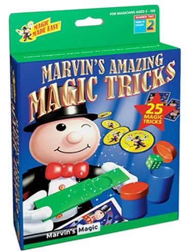 A charming and colorful collection of tricks from the Magic Made Easy series. This set includes 25 different, exciting and entertaining magic tricks for youngsters to collect. Suitable for magicians aged 6 upwards. Includes the Incredible Quick Change Money Box, Astounding Mind Reading Canisters, Magical Mystery Cards, Amazing Changing Cards plus much more. Magic is normally based on dexterity, skill and many years of practice, but with Marvin's Magic, budding magicians can perform similar sensational effects in no time