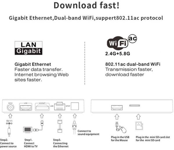 Interface: DC 5V,HDMI,LAN,Micro SD Card Slot,SPDIF,USB2.0