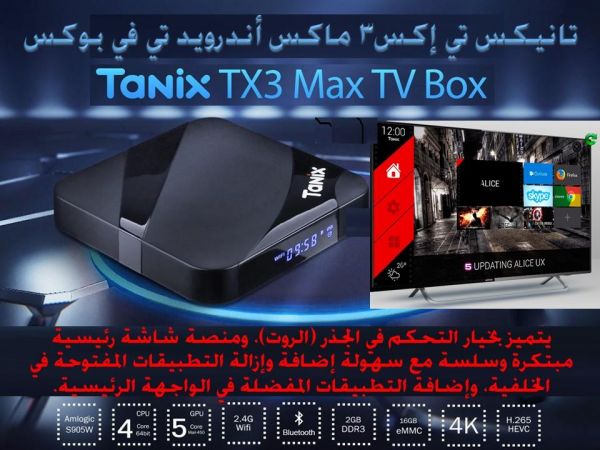 For those who have not had the opportunity to become familiar with the TX3 MAX, we remind you of new key features. The Tanix TX3 MAX has a specially designed case that differs in design from the Mini version (TX3 Mini TV Box). The Tanix TX3 MAX TV Box compared to the TX3 Mini has a different housing, 2GB RAM / 16GB eMMC, and bluetooth 4.0. Of course, the heart of TV Box is still the new Amlogic S905W SoC, which differs from other S905 chipsets (with an extra letter as S905X, S905D ..), supports video playback up to 4K@30fps. The MAX version also includes a new UI called ALICE UX. Which has a great design with many features. TX3 MAX TV Box runs on Android 7.1.2. More details in the specifications below.