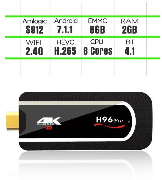 H96 Pro HDMI dongle comes preloaded KODI 17.3 and runs the latest Android 7.1.1 Nougat OS, on which users can install their favorite apps. It can also play 4K @60fps, and supports H.265 codec and HDR videos.