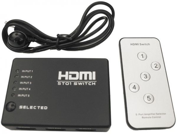描述:This 5-port HDMI switcher allows you to connect five disparate HDMI jacks into one