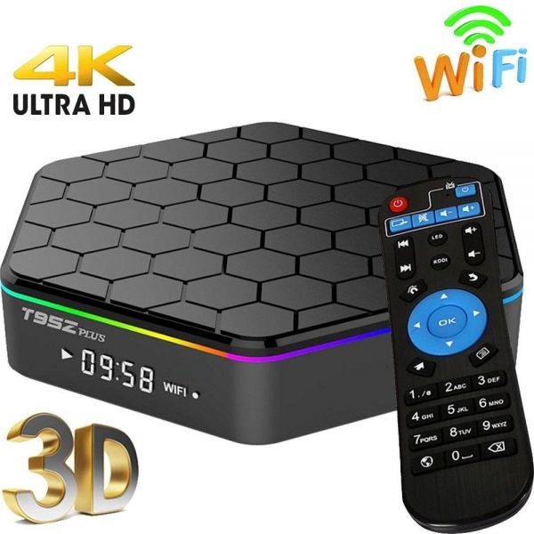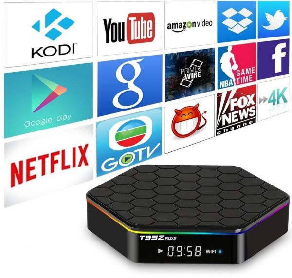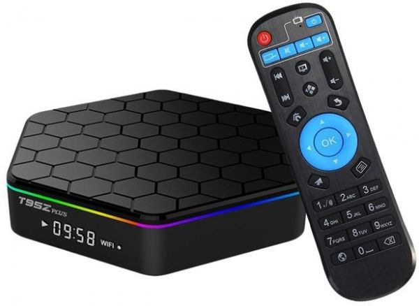 The T95Z Plus is currently one of the hottest Android TV Boxes that you can buy. As you can see in the pictures, its sleek design with a honeycomb pattern and illuminating lights, make this a nice looking product. The front of the T95Z Plus also sports a nice LED screen that displays items such as how it is connected (wifi or lan), and the time of day among other things.