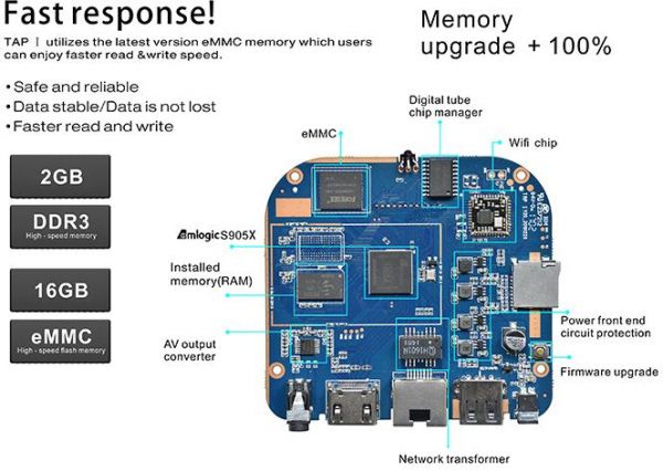 - Chipset: Amlogic S905X Quad Core ARM Cortex-A53 CPU up to 2GHz(DVFS)