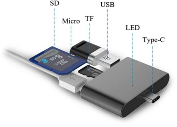 Card Reader Leadzoe USB C Hub 4 in 1 Type C OTG TF/SD Smart Card Reader with Micro USB Power Port Sp