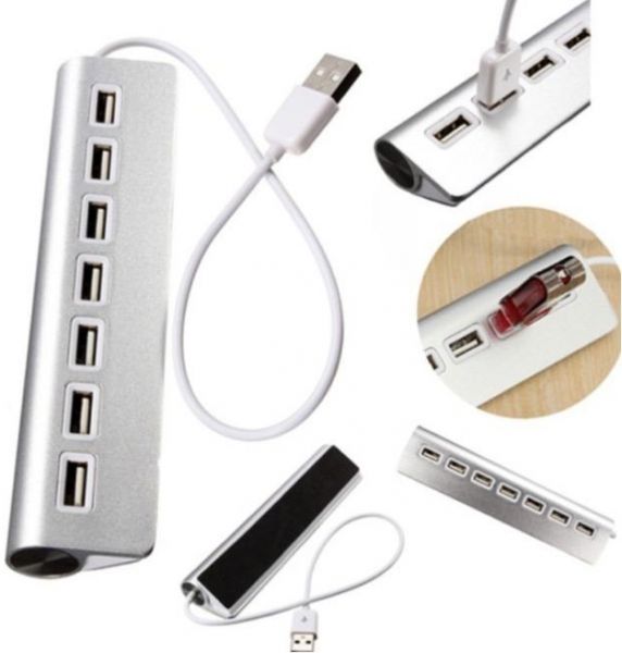 Aluminum 7 Ports USB 3.0 HUB Power Adapter For Laptop PC -25