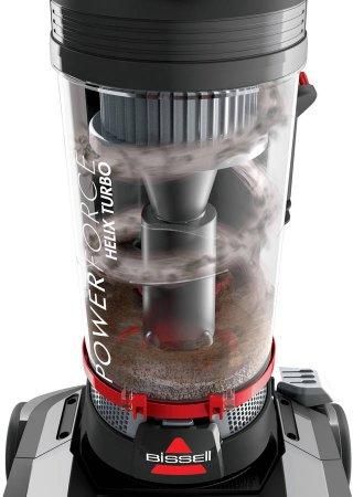 Keep your home looking its best with the Bissell PowerForce Turbo Bagless Vacuum. It offers an exclusive dirt separation system that captures more fine dust to keep your filters clean longer. Cleaner air and surfaces in the home mean that allergies and allergic reactions can be reduced, helping to keep you and your family healthy. The PowerForce vacuum's design extends the suction power and cleaning performance of your appliance. Ground-in dirt on rugs and carpets is quickly and effectively lifted away to leave behind clean, tidy floors. The five height adjustments make it easy for this Bissell bagless vacuum to clean almost any floor surface. A large capacity dirt cup allows you to get the job done with fewer stops to empty it.
