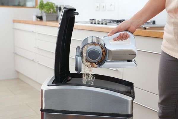 Quick and easy empty feature. Simply open the side door and empty the debris into your bin.