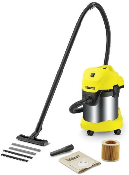The WD 3 Premium multi-purpose vacuum cleaner is super-powerful with a power consumption of only 1,000 watts. It features an impact-resistant 17-litre stainless steel container and a cartridge filter for vacuuming dry and wet dirt without changing the filter. Thanks to the newly developed suction hose and the new clips floor nozzle with two rubber and two brush strips, the multi-purpose vacuum cleaner consistently and immaculately removes all types of dirt. Thanks to the removable handle, accessories can be directly attached to the suction hose. The practical parking position allows convenient parking of the suction tube and floor nozzle during working interruptions. Blower function, "Pull & Push" locking system, ergonomic carrying handle, as well as practical cable and accessory storage complete the equipment package of the WD 3 Premium