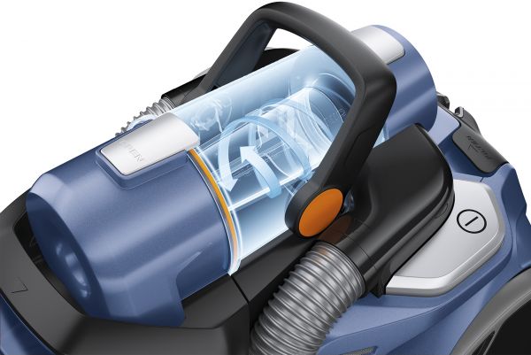 The Electrolux Cyclonic vacuum cleaner provides a powerful suction with its 1800W power output. The turbo cyclone technology spins air at 240kmph to collect the dust by efficiently separating it from the air. It is equipped with HEPA filters to trap dust, allergens, and other particulate matter. It ensures dust does not leave the vacuum cleaner and pollute the room. It also has a flat nozzle and AeroPro hard floor nozzle that help you clean off every surface and reach corners for a thorough and precise clean.