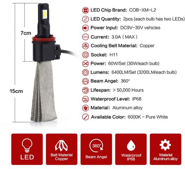 YELITE S7 Led Auto Car Headlight H11 6000K Automobile Bulb Lamp