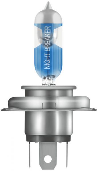 High-quality halogen headlight lamp with optimized performance. With up to 130% more light, experience even more intensity than the familiar NIGHT BREAKER UNLIMITED, and a significantly extended light cone! Whether luminous intensity, light cone or light color: The new OSRAM NIGHT BREAKER LASER has broken into new performance dimensions – and is now also setting the benchmark in safety, comfort, and design. The lamp has a unique design with a laser-engraved product name and silver cap on the glass bulb.