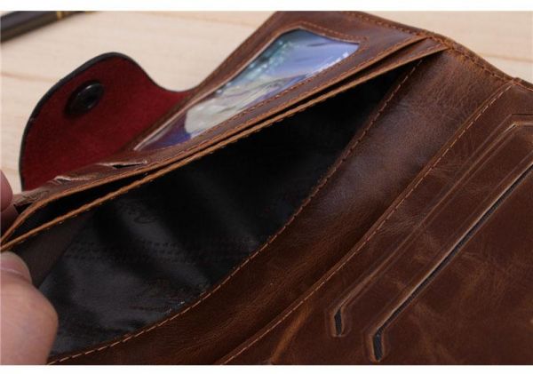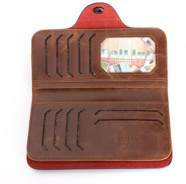 Material: Leather.Color: Brown.Style: Bifold.Long Slim Coin Purse Mens Genuine Leather Bifold Wallet Credit/ID Card Holder.Size: 19cm*9cm*1.5cm.
