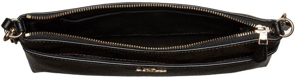 Details: Single, adjustable arm strap. Zip closure. Exterior slip pocket. Interior slip pocket.