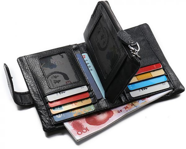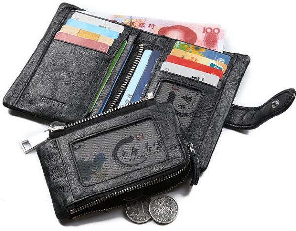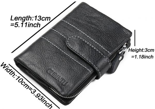 Gubintu Tri-fold wallet for men, leather, black color