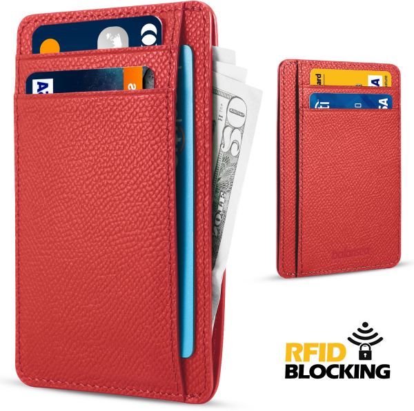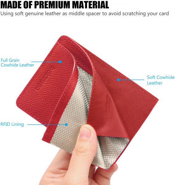 - ✔ GENUINE COWHIDE LEATHER - The front pocket wallets is crafted from top grain cowhide genuine leather, durable, trendy and having comfortable touch feeling. Packed within exquisite gift box, it's a great gift choice.