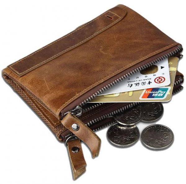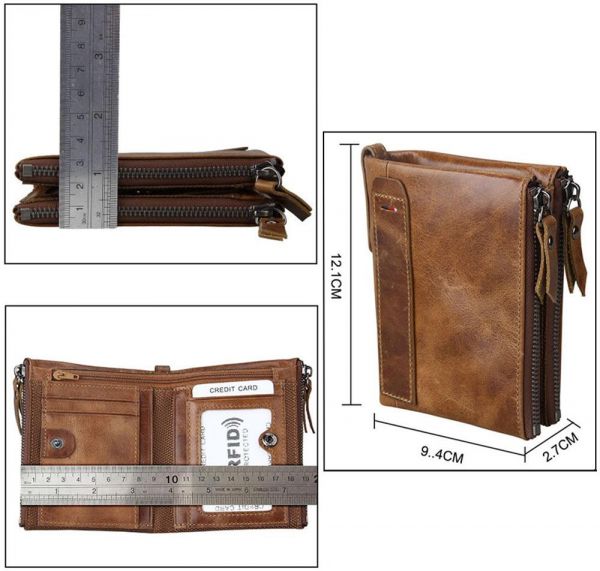 Leather Men Wallets Credit Business Card Holders Double Zipper Cowhide Leather Wallet Purse