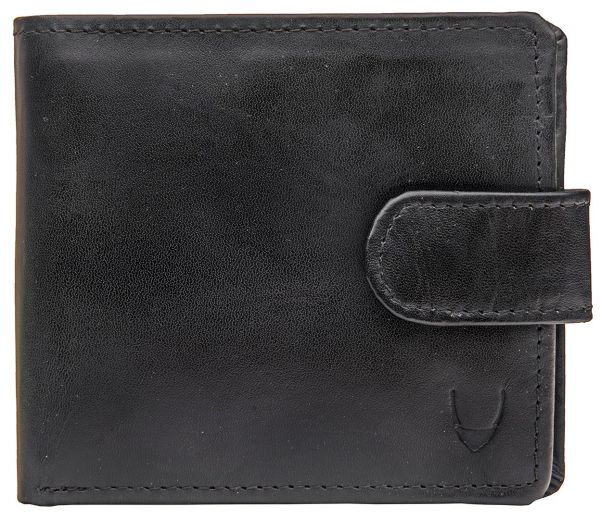 - Exterior: Tab with press button for closure. Hidesign embossed logo n the front. Packaged in metal casing.